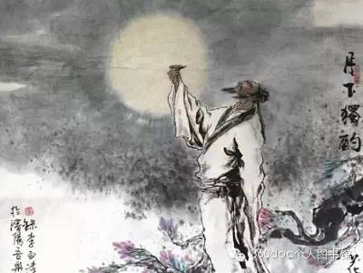 李白的五言古诗创作的题材非常广泛,风格也是多姿多彩的,这首《月下独酌》完全是李白飘逸风神和浪漫诗风以及个人精神世界的充分展示。全诗一共十四句,前八句平声韵,后六句仄声韵。就五言古诗这一体裁来说,《月下独酌》的篇幅并不算长,但其中却饱含了一颗孤独、寂寞心灵的追求与向往。这首诗通篇的出场人物只有李白自己一个人,却通过独白的方式,在心灵的深处掀起了一层又一层的感情波澜,既跌宕起伏又率性天然,历来被认为是李白诗歌的激情代表之作。