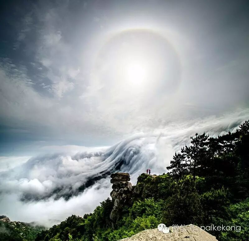 江西省庐山风景区百年不遇的奇景,在庐山领袖峰出现日晕景致。许多百岁老人都未听说过这一景观,实属罕见。