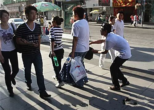 一般在什么情形下,会让他们轻易得手?看看下面的场景:当你毫无顾忌地把包包背在身后时。