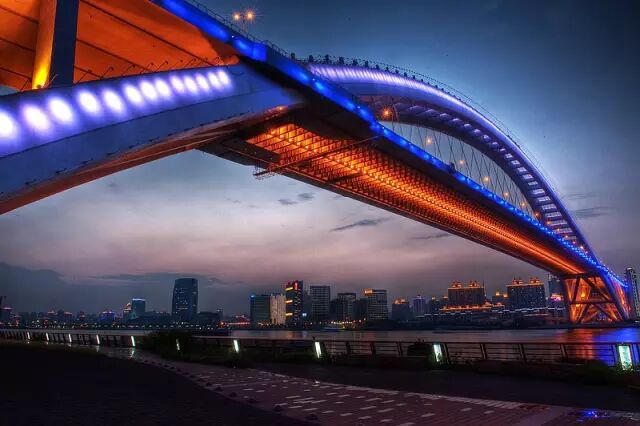 卢浦大桥是世界最大主跨最大、最长、螺旋最大的钢拱桥,它是横跨在黄浦江上连接浦东和浦西的重要交通要道。