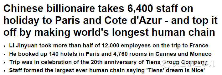一个中国老板出钱拉了自己公司一半的员工,6400人,来了趟法国游。