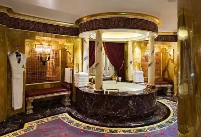 酒店内部极度奢华,每个房间有17个话筒,整个酒店内部金光闪闪,就连门把和厕所水管都用黄金做成,每个套房都配备为客人讲解各项高科技设备的私人管家。