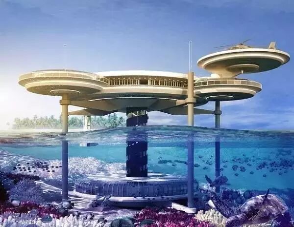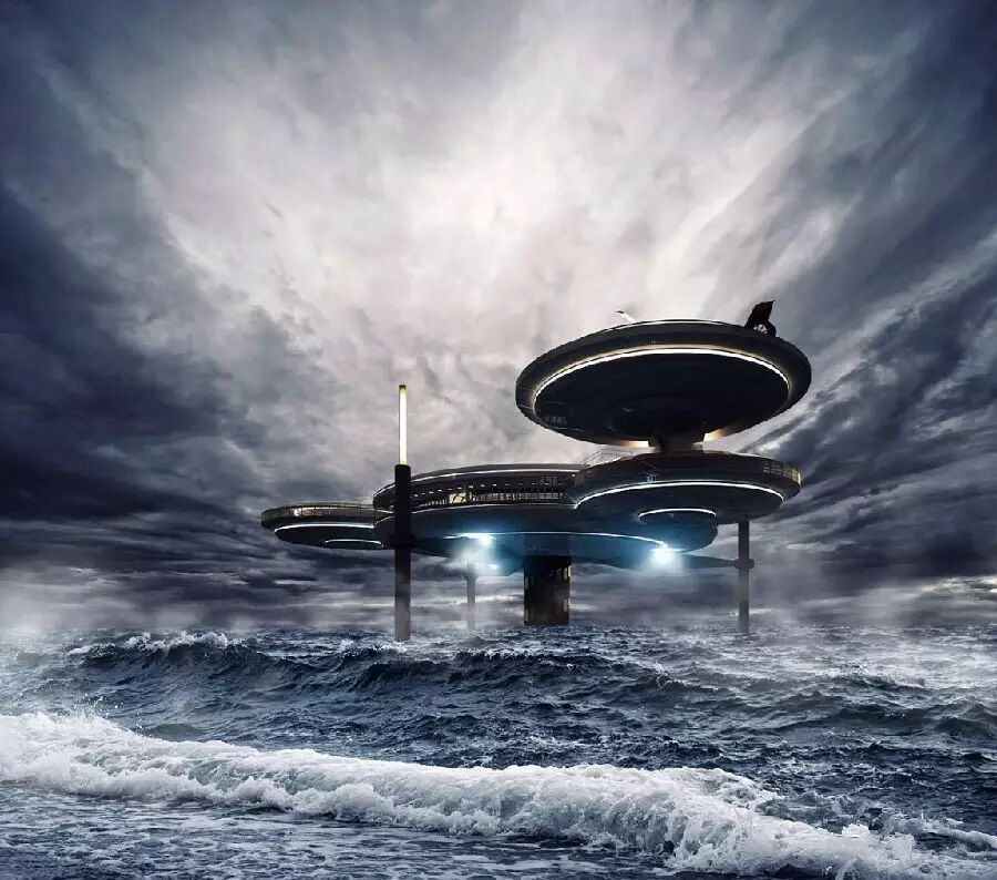 听说整个酒店安全性极高,一旦发生危险,酒店水下的圆盘部分会立即浮出水面。