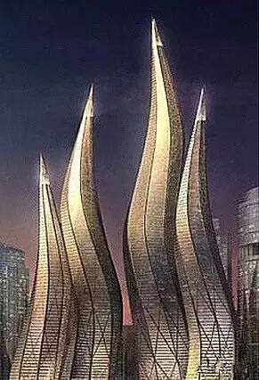 建造这四座塔的灵感来自于火焰,四座塔的心态和晃动的烛光十分相像。也有人将其想象成女人扭动的身姿,因此它也被称为最性感的建筑。这四座塔从54层到79层大小不一。