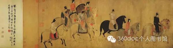 虢国夫人游春图描绘的是公元752年(天宝十一年),再现唐玄宗的宠妃杨玉环的二姊虢国夫人及其眷从盛装出游,“道路为(之)耻骇”的典型环境。