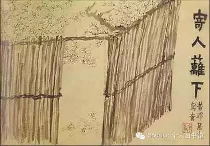 《寄人篱下图》的构图新奇,画幅很小,却于主位画了两块方形的篱笆,中间还留出一扇长方形的门,使画面布局处于刻板僵死的境地,但一株株梅花使得画面有了变化和生机。梅梢和落花,使这幅本应拘谨的画面产生了天地舒展、空灵透达的效果。画中的梅花,取“不简不繁”之妙,用笔简朴,气韵清逸。