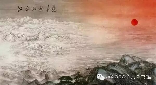 中国画。傅抱石、关山月合作。1959年为北京新建的人民大会堂所绘的巨幅山水画。毛泽东主席亲为题句:“江山如此多娇。”画面上旭日东升,江山壮丽,表现出新中国的勃勃生机。
