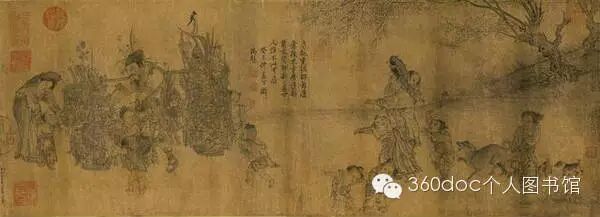 唐代画家周昉绘做,绢本设色(手卷),重彩,纵46厘米,横180厘米。用笔朴实,气韵古雅,现藏辽宁省博物馆。