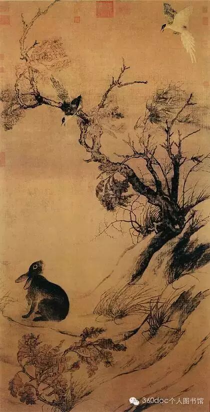 崔白特别喜欢画大画,《双喜图》高193.7厘米、宽103.4厘米,可以想见此画的气魄,这与画史中记载的崔白性情“疏阔”倒也一致。崔白还特别擅长把握画面的整体气氛,无论是《双喜图》,还是他的另一幅代表作《寒雀图》,同样都在一种统一、和谐的画面氛围中又含有无数丰富、细腻的变化,让人可以在画卷中玩味许久,仍然不断有新的东西发现,感到无穷的趣味。