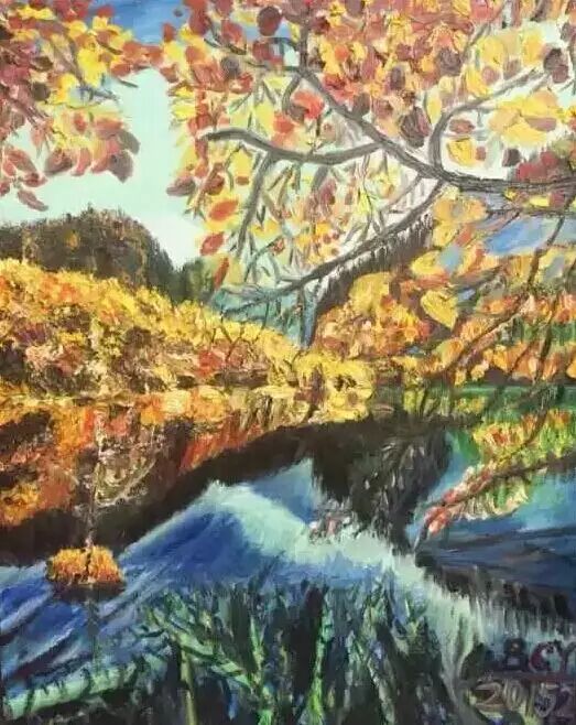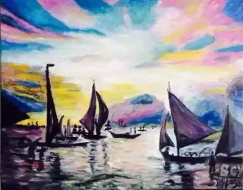 最让老师们惊讶的还是他在色彩方面的大胆运用,“今天天气晴朗,心情好,他画的色彩就明亮;反之,又是另一番面貌,同一个情境他能画出不同的感觉。”