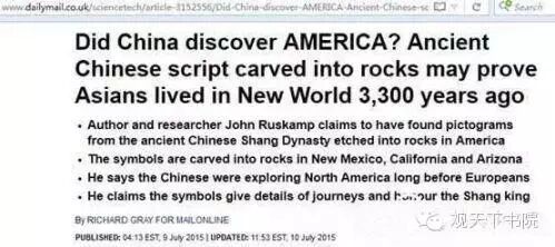据每日邮报报道:美国考古学家近日在新墨西哥州、加州和亚利桑那州的多个岩壁上发现了商朝甲骨文。因为文字篆刻时间比哥伦布发现美洲早了2800多年,因此他认为有可能是商朝人最先发现了美洲大陆。