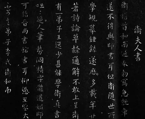 卫铄,即卫夫人(272-349)河东安邑人。名铄,字茂漪,自署和南。东晋女书法家。传为王右军(王羲之)之师。汝阴太守李矩之妻,世称卫夫人。《书法要录》说她得笔法于钟繇,熔钟、卫之法于一炉。所着《笔阵图》中云:「横」如千里之阵云、「点」似高山之墬石、「撇」如陆断犀象之角、「竖」如万岁枯藤、「捺」如崩浪奔雷、「努」如百钧弩发、「钩」如劲弩筋节。有《名姬帖》、《卫氏和南帖》传世。