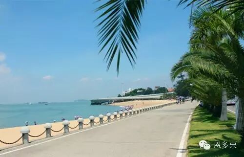 滨海风光,秀色可餐,建筑散落云雾之中,若蓬莱仙境;最妙海塘堤岸,红花绿影,仿佛珍珠翡翠,镶嵌于鹭岛之西。