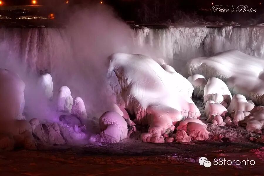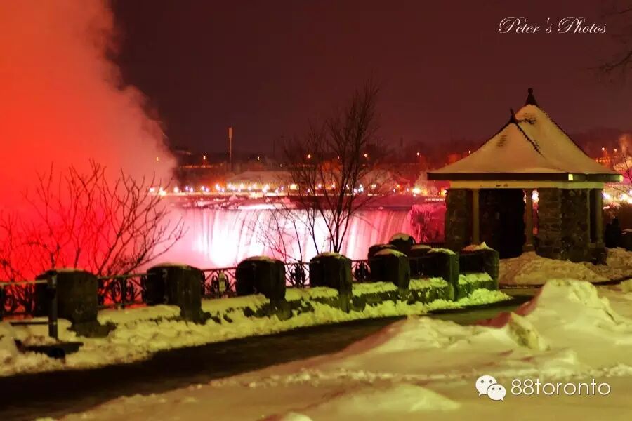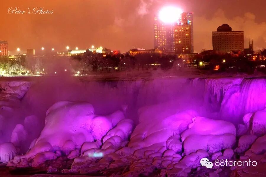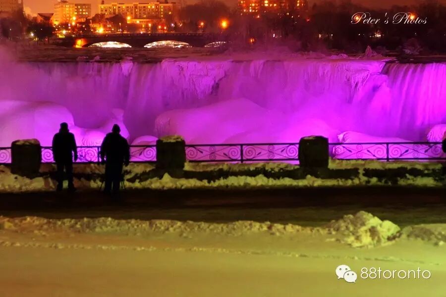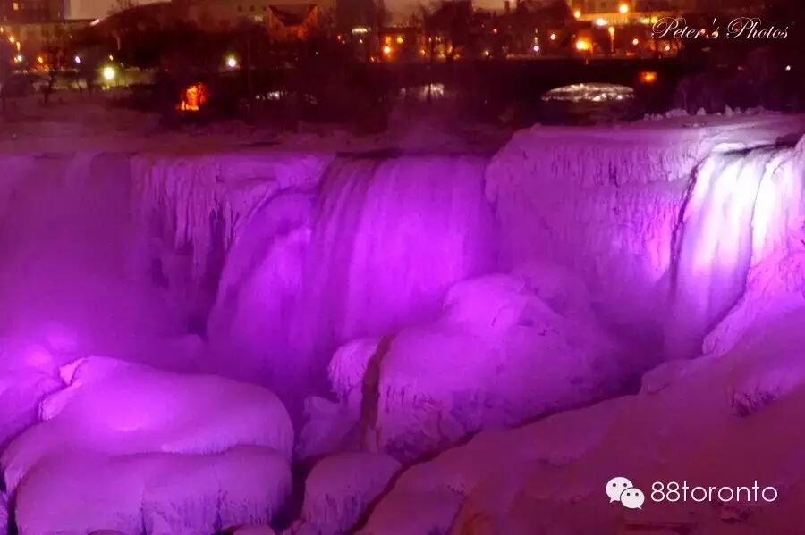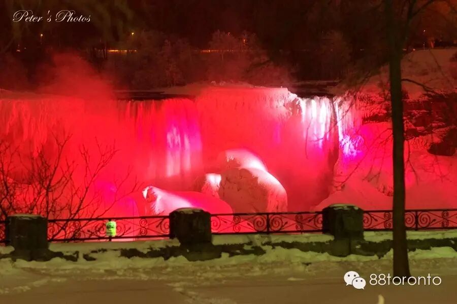 缤纷亮丽的色彩,让寒冷的尼亚加拉大瀑布呈现出如梦如幻的色彩,恍若一个冬天里的童话世界。