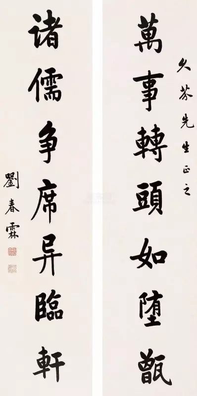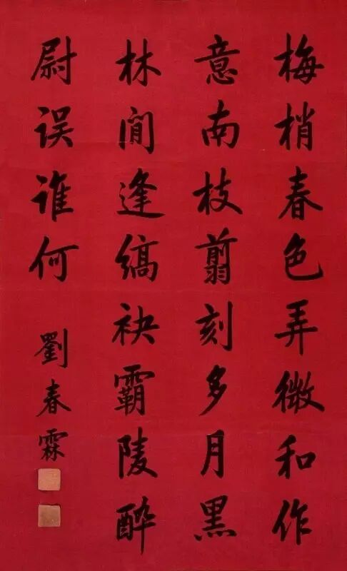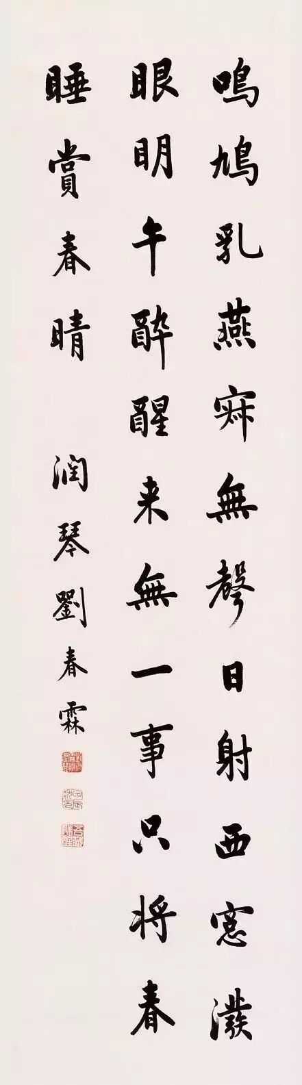 刘春霖善书法,尤以小楷为著,取法晋唐写经,清秀、挺拔、疏淡,方、圆、刚、柔浑然一体,笔致秀润稳健、流畅中寓古朴之风格,堪称一绝。故其有“楷法冠当世,后学宗之”之誉,而至今书法界仍有“大楷学颜(真卿)、小楷学刘(春霖)”之说。