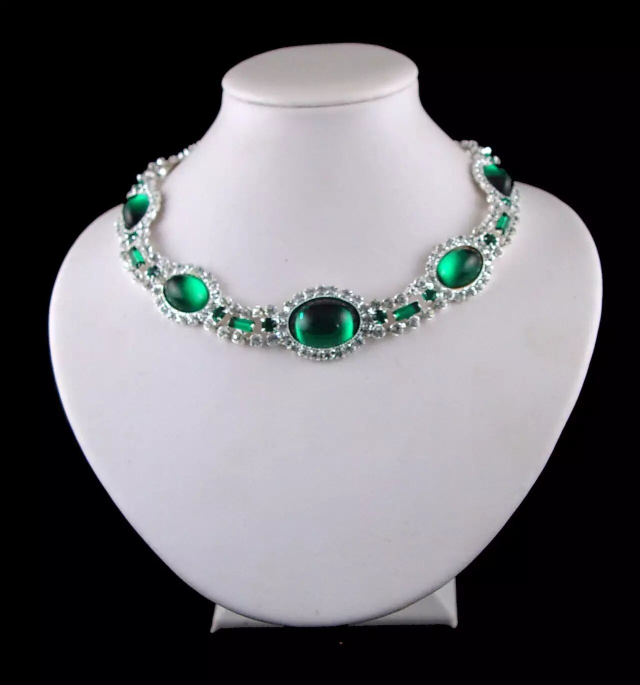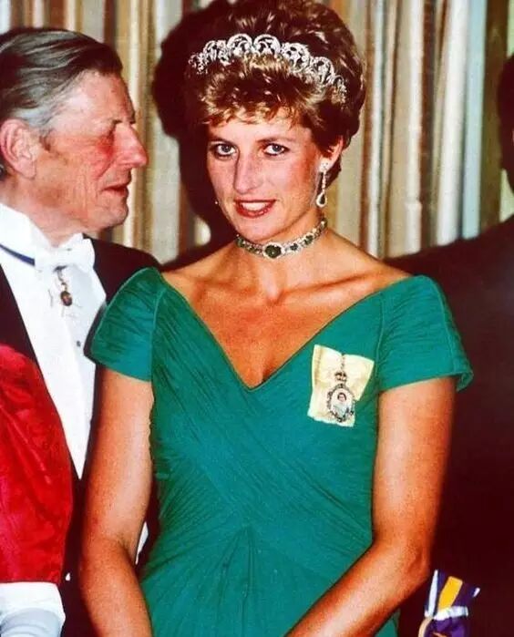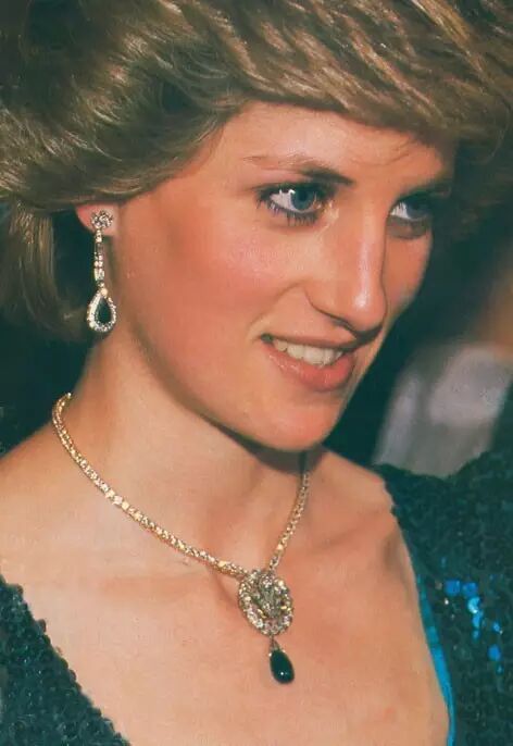 这串祖母绿项链由玛丽王后留给伊丽莎白二世的母亲,王太后又将它传给了伊丽莎白二世女王,最终女王把它送给了戴安娜当结婚礼物,这也是戴安娜最喜欢的珠宝之一,很多场合都佩戴过,开始的时候戴安娜把它当成项链带的中规中矩。