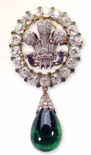 1983年,戴安娜与查尔斯访问澳大利亚时佩戴了一个三根羽毛造型的吊坠。这枚吊坠本是爱德华七世送给亚历山德拉皇后的结婚礼物,上面是威尔士亲王的纹章,即三根羽毛的图案,后来查尔斯又送过一对祖母绿耳环给戴安娜,戴安娜便在这个羽毛吊坠下添加了一枚可拆卸的水滴祖母绿作为搭配。
