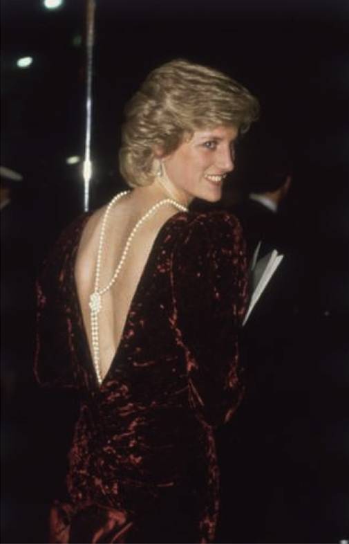 戴安娜大胆前卫,王室的保守显然不能束缚住她自由的灵魂,1985年在电影《Back to the Future》的首映礼上,戴安娜一席大胆的露背天鹅绒长裙,将长珍珠项链变成后坠式项链,性感时髦,成为全场焦点。