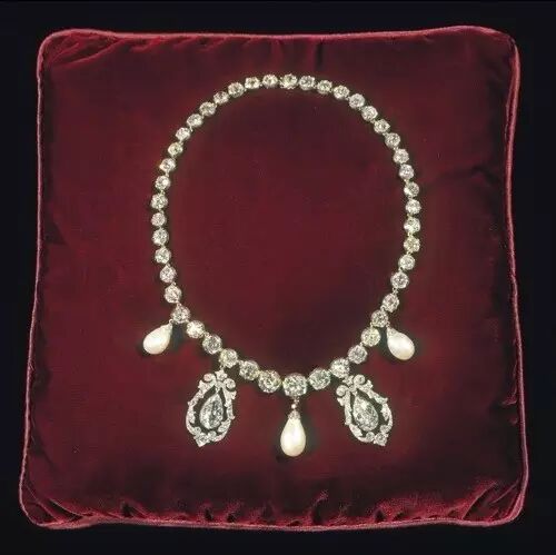 新婚的前些年,戴安娜颇受王室宠爱,女王曾经借给她很多珠宝,1981年11月4日,戴安娜参加了维多利亚与阿尔伯特博物馆的展览,女王借出了这条7盘珍珠颈链。