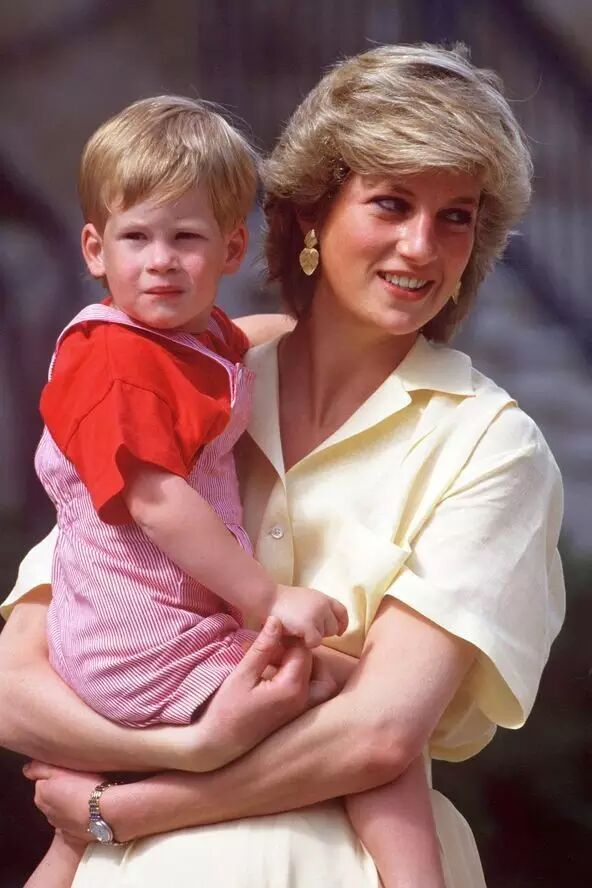 1986年在西班牙梅扎卡岛的假期中的戴安娜和哈里王子