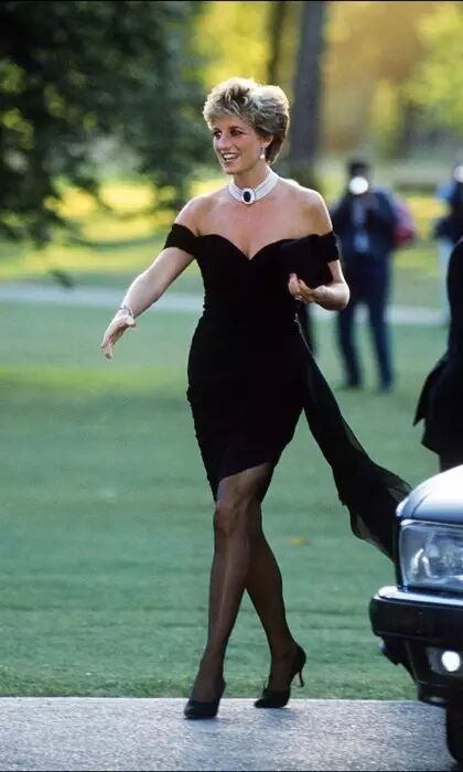 1994年,戴安娜身穿一袭紧身露肩丝绸黑裙,佩戴王太后的结婚礼物斯里兰卡蓝宝石颈链,言笑晏晏的参加伦敦画廊的夏季派对。那一天查尔斯王子承认与卡米拉的婚外情。据悉这条小黑裙其实在戴安娜的衣橱里已有时日,但是此前她一直犹豫这条裙子是否太过性感,经过这个特殊的时间和场合后,这条飘逸性感的黑裙也被媒体称为“复仇礼服”。