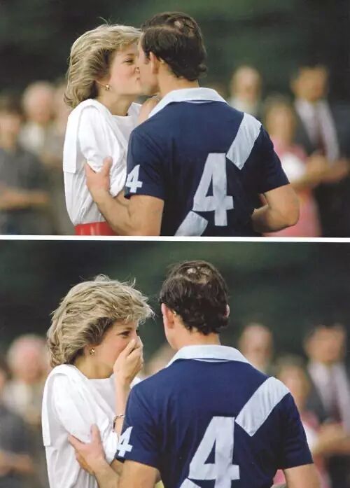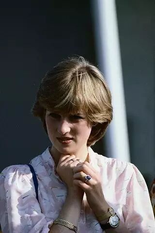 1981年大婚前三天,戴安娜与查尔斯一起参加了史密斯.劳伦马球场的马球比赛,除了婚戒,她右手戴着的是这年生日查尔斯送的金手链,左手则把自己的手表和查尔斯的手表叠加在一起佩戴,让人感觉温情满满。