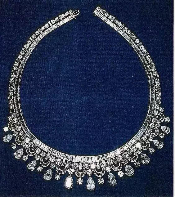 1967年沙特阿拉伯国王费萨尔访问英国,将这条镶嵌有87克拉钻石的项链送给了伊丽莎白二世,在1983年戴安娜陪同查尔斯访问澳大利亚期间,女王将项链借给了她。