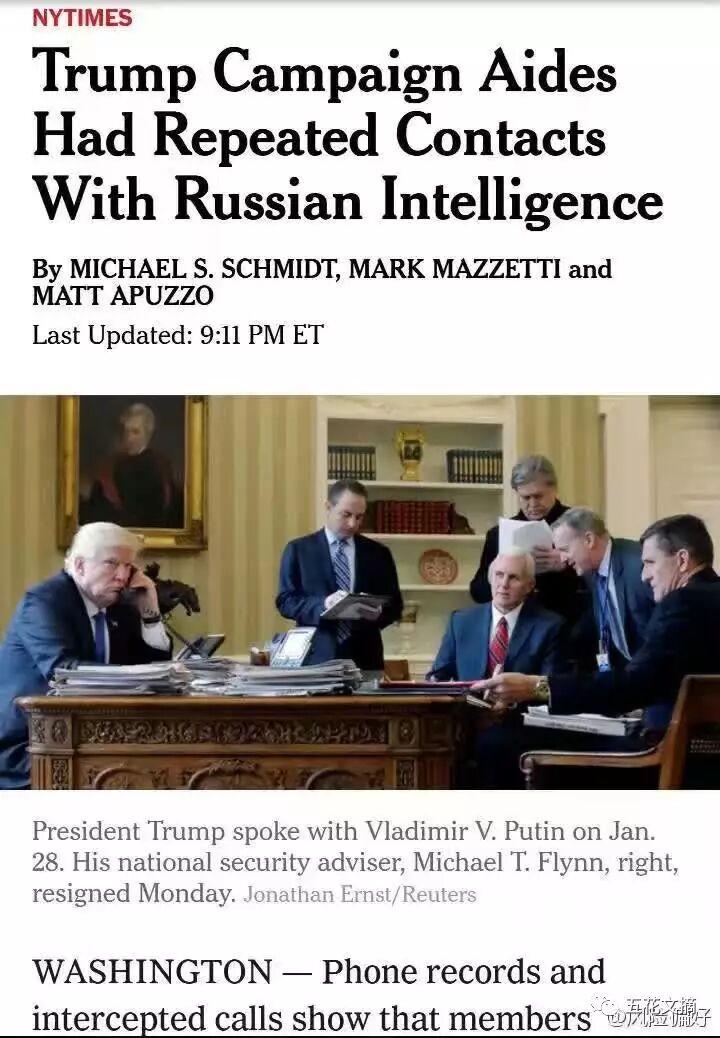 弗林的事还没完结,仅仅在他辞职二十多个小时后,又爆出川普竞选团队中有多名高层从竞选时就和俄罗斯情报机构保持频繁联系!