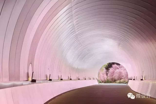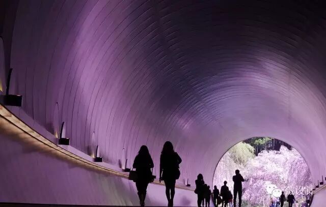 ▲隧道不大,特意设计成S状,让人看不到尽端,隧道内的梦幻灯光,仿佛带你穿越了时空。正所谓 “林尽水源,便得一山,山有小口,仿佛若有光,初极狭,才通人....”