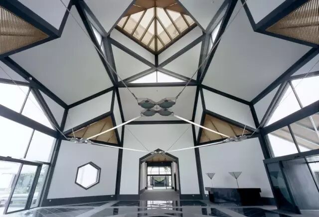 首先,屋顶之上立体几何形体的玻璃天窗设计独特。