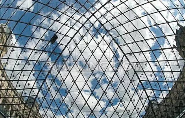 由于玻璃自身的特性——透明、反射,并且玻璃透明不至于遮挡减损原建筑物的立面,不仅符合贝氏对阳光的追求,更能够从视觉上以及空间原理上使得原有的建筑群不会被削弱,并且能使设计者的建筑思想得到充分表现,加上光线和人的运动,整个空间被赋予了活力。