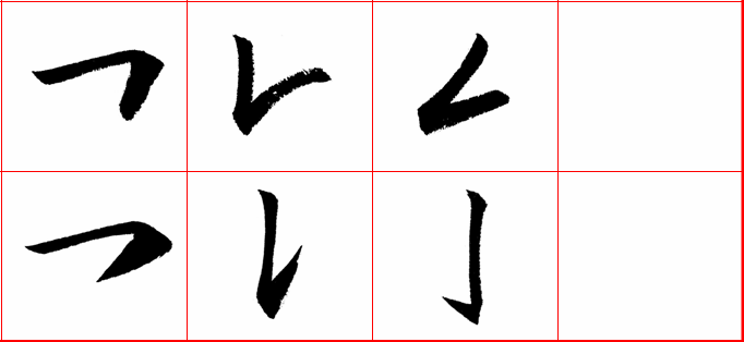 横点:方向同短横,起收方法相同;同下一笔呼应时,收笔带钩,钩要扎实;